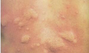 这种荨麻疹发病急,患者的皮肤会突然发生的瘙痒,身上会出现大小不等的风团。通常风团会呈现圆形、椭圆形等形状。