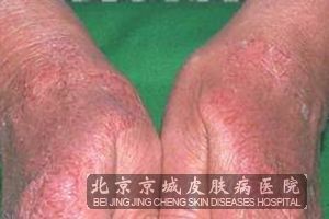 接触性皮炎典型的皮损可表现为境界清楚的红斑,红斑的皮损形态大多会与接触物有关。通常情况下,如果是内裤染料过敏的话皮损可呈现裤形分布,而接触物如果是气体、粉尘的话,那么病变大多可发生在身体的暴露部位,比如手背、面部、颈部等处。