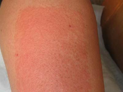 患者接触性皮炎的皮损症状的轻重还会与致敏物质或是刺激物质的强弱,作用时间的长短和接触面积的大小以及自身敏感度高低等因素有很大的关系。轻微的接触性皮炎的症状大多可表现为局部充血,还可在皮肤上出现境界清楚的淡红或是鲜红色斑,稍微有些水肿,或者在患病部位有针尖大丘疹密集等症状。