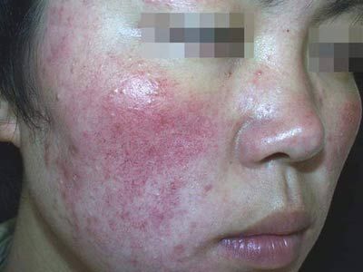 1、红斑期:患处出现潮红,脸颊部皮肤是主要发病区域。尤其是运动、激动、遇热时,这种症状会变得更加的明显,感觉局部肿胀,伴随着出现瘙痒。间断性地发生,随着时间的推移,红斑的出现几率增高,成经常性。