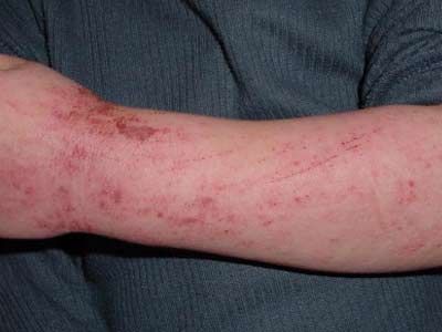 3、胸部、肩胛部,发病初期是小的红褐色毛囊丘疹伴油腻性鳞屑,以后中央会渐渐出现具有细鳞屑,边缘有暗红色丘疹及较大的油腻性的环状斑片。