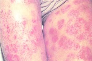 俗称晒斑,一般在暴晒后数小时内于暴露部位出现皮肤红肿,亦可起水疱或大疱。皮损部位有烧灼感、痒感或刺痛。轻者1—2天皮疹可逐渐消退,有脱屑或遗留有不同程度的色素沉着;重者可伴有类似感冒症状,如发烧、乏力、全身不适等,约一周左右即可恢复。