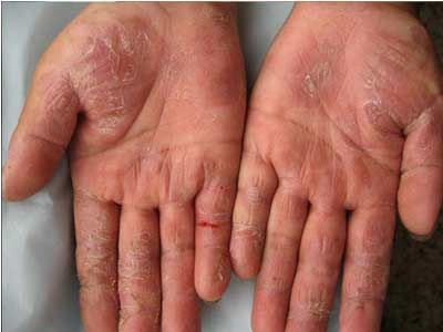 1、汗疱疹样湿疹:出现在患者手掌、指部或是手部侧缘,有水疱,瘙痒感明显,皮损处的鳞屑有时会圈样发展,没有很明显的炎症反应,但也可能出现糜烂和渗出,感染时会有脓疱等出现,有时皮损处呈干燥的鳞屑样。