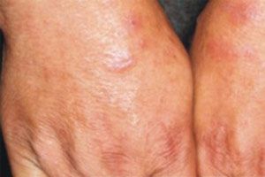 出现在掌部的湿疹一般会有局限的红斑,红斑的边缘不清楚,并且会有深在的小水疱、丘疹及浸润肥厚的症状,而且在冬季的时候常常会发生皲裂的现象。