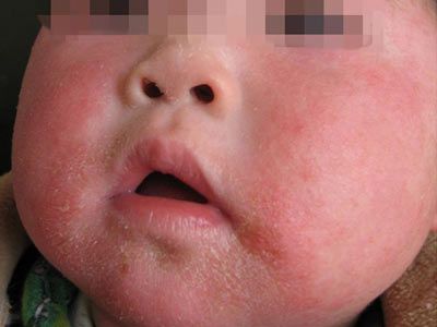 1、渗出型:多见于较胖的婴儿,红色皮疹间有水疮和红斑,可有皮肤组织肿胀现象,很痒,抓挠后有黄色浆液渗出或出血,皮疹可向躯干、四肢以及全身蔓延,并容易继发皮肤感染。