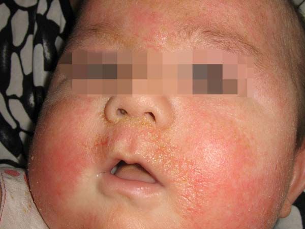4、营养不周:营养不周也是婴儿湿疹的病因之一,由于母体雌激素通过胎盘传给胎儿,以致新生儿皮脂增多,发生脂溢性湿疹。过度营养的婴儿往往会因食欲旺盛而造成吐奶、消化不良。