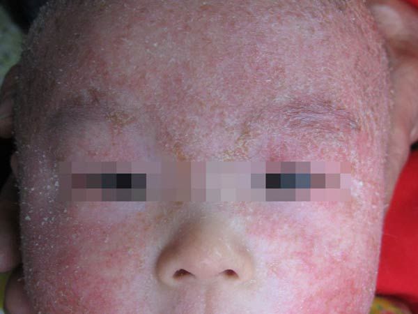 (1)婴儿期 多见于出生一月后开始发病,好发于面颊部,呈湿疹样改变,局部潮红,糜烂渗出、结痂,自觉剧痒,一般多呈急性或亚急性经过。皮损可蔓延整个面部、头皮、少数患儿可累及颈部、四肢伸侧、臀部等处。通常1~2岁自愈,少数可迁延至儿童期。