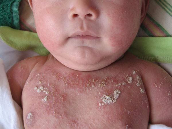 1、婴儿期:亦称婴儿湿疹,多见于出生一月后开始发病,常见于面部,也常见于其他暴露或易受摩擦刺激部位,是一种急性炎症,多表现为红斑、丘疱疹,呈湿疹样改变,局部潮红,糜烂渗出、结痂,自觉伴有剧烈的瘙痒感。