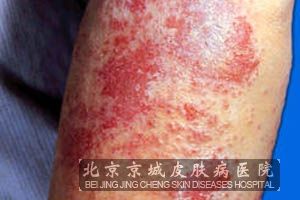 2、皮疹主要特点为以红斑为基础,出现对称性丘疹、丘疱疹以及小水疱,日久可融合成片,伴随剧烈的瘙痒。