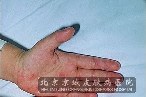 然后,孩子的皮肤发生一些变化,如发病时宝宝的口腔内颊部、舌、软腭、硬腭、口唇内侧、手足心、肘、膝、臀部和前阴等部位会出现小米粒或绿豆大小、周围发红的灰白色小疱疹或红色丘疹。疹子不像蚊虫咬、不像药物疹、不像口唇牙龈疱疹、也不像水痘,所以又称“四不像”;而临床上更有不痛、不痒、不结痂、不结疤的“四不”特征。丘疹或疱疹多在一周消退,少数8~12天恢复,疱疹多不破溃,疹后不留色素沉着。