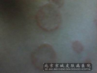 潜伏期为5~14天。病人多数为4~12岁儿童。常突然发疹而无全身症状,仅少数病人轻微发热,有时出现咽痛、呕吐、眼结膜及咽部充血。皮疹首先出现在面颊部、呈水肿性蝶形红斑,边界清楚,其上无鳞屑,局部温度增加,偶有微痒和烧灼感。皮疹不发生于口唇周围。经过1~2天后,在躯干、臀部及四肢出现对称性边界清楚花边状或网状斑丘疹,为本病特征。4~5天以后,红斑自颊部及躯干上消退。皮疹消退次序和出疹次序相同。皮疹消退后不脱屑。有时复发。常见于春季,病程10天左右。预后良好。