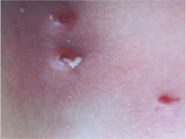 在病人患上传染性软疣后,通常没有感觉,不过有部分传染性软疣患者会出现轻微程度的瘙痒。用手对患处进行挠抓或者挤压的话,很容易发生感染,皮疹的附近也会出现红肿甚至是脓疱。因此传染性软疣患者要进行针对性的治疗: