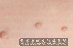得了传染性软疣后,病人的皮肤损害为粟粒到绿豆大小的半球状正常肤色或微红的丘疹,表面为光滑的,中间有个脐窝,挤压后可见白色的软疣小体损害,孤立或者散在多发。好发于躯干、四肢、阴囊及眼睑,也可见于阴唇、舌及颊粘膜。本病可自行消退,发生于眼睑易引起慢性结膜炎或表浅树枝状角膜炎。