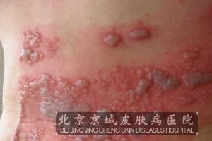 带状疱疹是病毒性皮肤病的一种,是由于水痘-带状疱疹病毒感染而导致的。水痘-带状疱疹病毒可以经呼吸道的黏膜进入血液,形成病毒血症,可以使得人们出现水痘或者是带状疱疹的隐性感染,当遇到外伤、过度疲劳等情况而导致的机体*力下降的时候就可能会诱发带状疱疹。