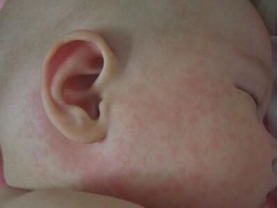 接触过麻疹患儿的孩子2~3周后开始出现高热,同时伴有眼睛流泪、流鼻涕甚至咳嗽等貌似感冒的症状。3~4天后在口腔出现针尖大小的白色斑疹。之后全身出现皮疹,初为淡红色斑丘疹,后增多融合呈暗红色。皮疹从耳后颈部开始3~4天出齐,疹齐后体温逐渐下降,疹子慢慢消退。
