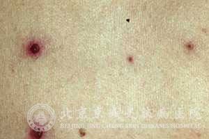 X线胸片可见双肺弥漫性结节状阴影,肺门及肺底处较好。水痘肺炎的病理过程大体上与皮疹同步,常随皮疹消退而好转;但少数重症水痘肺炎患者临床症状消失后,X线阴影仍可持续存在2~3个月方能消散。原发性水痘肺炎的发生影响了患者的正常皮肤美观,给患者带来了很大的影响。