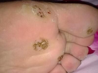 脚上的病毒疣在发病早期比较容易治疗,患者在发现自己感染这种疾病后,应该避免搔抓,以免造成皮肤续发性感染,并且早期治疗,这时候治疗的效果也很好。临床上治疗病毒疣有液态氮冷冻治疗、电气烧灼、化学药物烧灼等,疣的数目多或局部治疗结果不佳的时候,可以采用药物配合治疗。