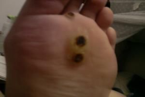 2、发病病程:跖疣病程慢性,可自然消退。一般认为儿童较成人易于消退,多汗或跖骨异常者不易消退。