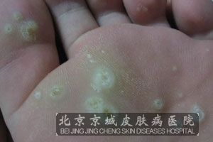 跖疣的皮疹通常比较容易出现在足跖、足跟以及跖间的受压处,一般会有压痛感,并且在一个较大的跖疣的四周还经常会出现散在的小的卫星疣。