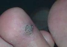 跖疣的症状表现,跖疣好发于足跟、跖骨头或跖间受压处,初发时表现为针尖大小的丘疹,然后逐渐增大,表现为质地较硬,表面粗糙,中央微凹,边缘绕以稍高的角质环。一般跖疣数目不定,初发时为单个,可逐渐增加。