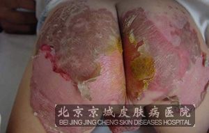 1.皮肤损害:皮肤损害一般多对称发生于口、眼、鼻、肛门、女阴等腔口周围以及骨突起部位。临床特征是皮肤出现在红斑基础上的群集水疱或大疱,尼氏征阴性,也可因为继发感染而变为脓疱,形成糜烂面后则发生干燥、结痂,形成鳞屑,其损害还可以逐渐融合成境界清楚的鳞屑性暗红斑,酷似银屑病皮损,并且皮损的周围有红晕。愈后不会遗留瘢痕和萎缩。