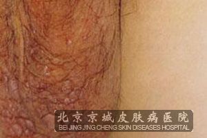 维生素B2缺乏症的典型损害为阴囊皮炎、口角糜烂脂溢性皮炎、结膜充血及怕光、流泪等,其中患者的阴囊炎损害一般可以分为三种类型红斑型、湿疹型、丘疹型;而对于丘疹型损害的症状一般为散在或密集成群的绿豆至黄豆大的红色扁平丘疹,不对称地分布于阴囊两侧,上覆盖发亮磷屑等。