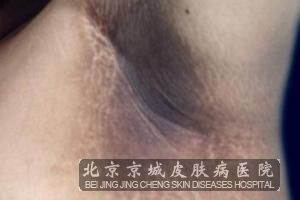 3、恶性黑棘皮病:临床认为和患者的内脏肿瘤有关,研究表明大部分患者的皮肤病症和谁提内脏的恶性程度同步发展,有部分患者症状出现在恶性肿瘤之前,或继发于恶性肿瘤之后。