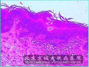 北京京城皮肤医院介绍:苔藓样淀粉样变的组织病理为表皮棘层肥厚和角化过度,染色淀粉样蛋白呈均质性、轻度嗜酸性团块,其中有裂隙,在固定和脱水过程中,淀粉样蛋白收缩引起的。此类型一般要与胶样粟丘疹、皮肤粘膜透明变性、卟啉病进行鉴别,以免混淆。