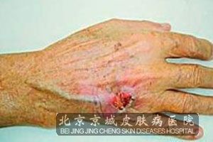 鳞状*癌的皮损可表现为暗红色坚硬的小结节,并且可有毛细血管扩张的现象,然后皮损可继续发展,可逐渐扩大,而形成坚硬的红色斑块。皮损继续发展还可导致有菜花状的皮损,出现溃疡,可自觉疼痛。