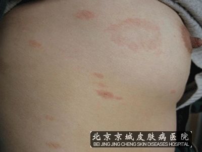 ( 2 )白癜风黑素*消失或减少。白色糠疹黑素*存在。单纯糠疹俗称虫斑,是儿童的一种常见皮肤病,亦可发生青壮年。色素减退呈圆形或卵圆形,境界清楚,边缘略为高起,上覆少量小鳞屑,多无自觉症状为特点,斑片大小不等,直径约1厘米数厘米,早期为淡红色,不久即变为淡白色,此时若不注意辨认,易于白癜风混淆。但是,虫斑的减色斑脱色不基本,表面较粗糙,有时还附有鳞屑,这些均有助于与局限性白癜风的鉴别。只要按医嘱用药,白色糠疹一般不会有后遗症。