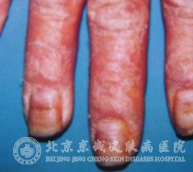 北京京城皮肤医院指出,毛发红糠疹的早期皮损一般先从头皮及面部开始,一般会在头皮较厚的部位出现灰白色鳞屑,面色发红,有细微的鳞屑出现,随着病情的发展,会在颈部、躯干、四肢出现脱落的鳞屑,一些鳞屑会在毛囊口形成丘疹,并且在丘疹中心有新的角质栓形成,如果病情继续发展,无法得到控制,会形成弥漫性红皮病,严重的危害患者的健康。