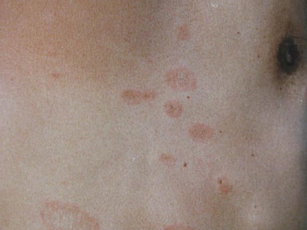 玫瑰糠疹皮疹多发于躯干部,主要以胸背部较为多见,其次为颈、肩、臀部和四肢近心段。皮疹一般自指甲大至鸡蛋大红斑,呈圆形及椭圆形,边界清楚,边缘作锯齿状,表面披覆糠状鳞屑,有时还伴有不同程度的瘙痒等。推荐阅读:玫瑰糠疹病因
