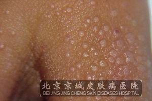 光泽苔藓的症状是其损害为直径1~2mm大小,微高出皮面的扁平、坚实丘疹,呈圆形或多角形,正常皮色或淡红、黄褐色、表面有光泽多数聚集,但不融合,大小始终不变,周围无炎症,有时皮损的表面有细薄鳞屑,或轻度摩擦皮损,可见少量鳞屑,玻片压视,显示乳白色小点。皮损有时可呈环状排列少数病例呈泛发型或融合型,融合型皮损呈红黄或棕黄色斑块,被覆细小鳞屑,周围可见少数散在皮疹。若外伤或搔抓,可出现同形反应。其损害好发于阴茎、包皮、龟头阴囊亦可见于下腹、乳房、腹壁臀部及膝肘伸侧,一般不见于颜面及头皮融合型者主要见于四肢及皮肤皱褶部,如颈围妇女乳房下部,发生于下肢者,有时可呈紫癜状,类似进行性色素性紫癜性皮病。掌跖很少受累,表现为掌跖鶒的对称性过度角化性红斑、裂隙和砂纸样的损害。偶见黏膜损害,呈细小灰白色扁平丘疹或斑块指(趾)甲亦可受累,出现纵嵴、肥厚、脆裂等,但比较少见。经过中可并发扁平苔藓一般无自觉症状,偶有痒感有的甚至鶒是剧烈瘙痒无全身症状病程由急性开始经过徐缓,逐渐增多,可自行消退但易复发。