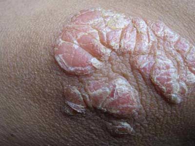 牛皮癣初发时为红包或棕红色丘疹,并覆有干燥的鳞屑,然后逐渐发展为棕红色的斑块,分界清楚,并且临近的可以相互融合。牛皮癣的鳞屑为银白色,并且会逐渐加厚,用手搔抓时,鳞屑会掉落,露出红色光滑的基面,除去上面的薄膜时,有针头大小的出血。