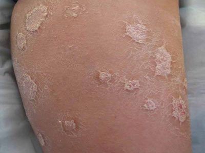 2、牛皮癣的发病原因比较复杂,导致症状也不相同,牛皮癣通常可以分为寻常型牛皮癣、红皮型牛皮癣、脓胞型牛皮癣等,寻常型牛皮癣在生活中较多见,多为急性发病,牛皮癣的症状表现是呈点滴状的,会有白色的鳞屑,鳞屑下是透明的薄膜,刮除薄膜会有出血点,皮损上覆盖鳞屑,边界清楚,相邻的皮损可以相互融合这是寻常型的牛皮癣的较为主要的临床的特征。