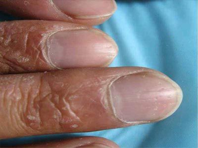 2 皮损症状一般在患者身上成对称性分布。比较好发作于肘关节和膝关节以及头部。但是有的患者还有别的部位也容易发生感染,比如指甲,会出现甲形畸形等情况。