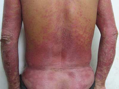 2、早起牛皮癣多发于四肢,其次是头部和躯干。主要表现关键词:点疹、鳞屑、薄膜、点出血。丘疹便面覆盖多层多层白色或银白鳞屑,轻轻刮除后露出一层淡红色发亮的半透明薄膜,称为薄膜现象。