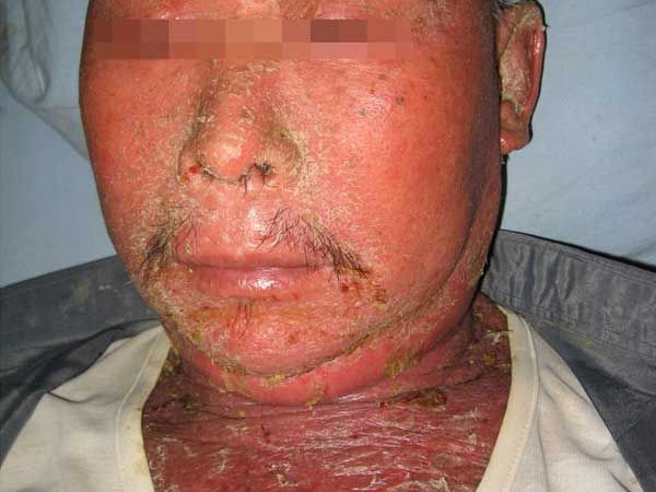 头皮型银屑病初期时,患者的头皮屑会非常多,经常洗头仍然满头白屑纷飞,持续很久。慢慢形成大片或覆盖厚厚的鳞屑,皮损边界清楚,特别在额部发际常见成片浸润红斑,表面的鳞屑多由皮脂及灰尘相互混合而成,成淡黄或灰黄色,但剥离后其仍为银白色,基底可露点状出血。