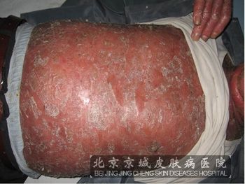 北京京城皮肤医院指出,红皮病性牛皮癣的临床特点:由于病程进展或治疗不当等某些因素刺激,皮疹面积扩大到全身,发展成红皮病型。此类型比较少见,属严重的一种类型。
