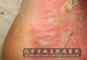3、掌跖脓疱病的病发症状是原发性损害是大小几乎一致的脓疱,直径为2~4mm,成群的皮损可在数小时内出现在外观正常的掌跖部位。脓疱周围有红晕。其损害的颜色可随着时间得延长由黄色变为深褐色。而且5~7天后脓疱可逐渐吸收,其症状是患处皮肤增厚、变硬,失去弹性呈片状鳞屑,周边游离而中心固着,边缘和中心还可见皲裂。表皮脱落后下方为红色嫩薄的表皮,病变严重的时候还有点状糜烂,渗液较多,类似湿疹样改变。持续数周到数月以后,表皮下方仅有水疱脓疱发生,而且缓解期长短不一。