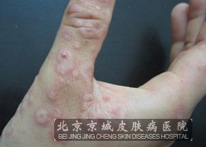 2、多型红斑的患者是主要是,由于*复合物由于沉积在皮肤或者粘膜或者小血管内皮*下方,由于引起血管炎症反应、因此容易引起血浆渗出,这样容易引起 水肿,甚至是表皮坏死。同时是多型红斑的症状表现为丘疹、、风团,或大疱性多形态的损害。