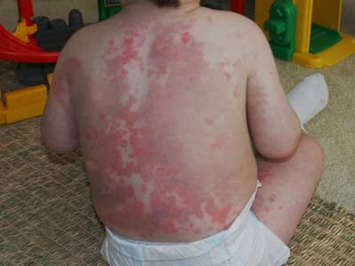 一、斑疹-丘疹型:此种类型是较常见的一种,皮损对称分布在患者的手背、前臂以及足踝等处。发病初期皮损处出现圆形的红斑,有较明显的水肿,或是扁平的丘疹,大小如同扁豆到硬币一般,其颜色呈鲜红,皮损的境界清楚,呈远心性向外扩展,可在1-2日之后,皮损的中央呈暗紫色,或有紫癜、水疱甚至是血疱出现。