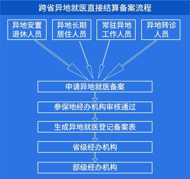目前,异地安置退休人员、异地长期居住人员、常驻异地工作人员、异地转诊人员均可申请跨省异地就医直接结算。