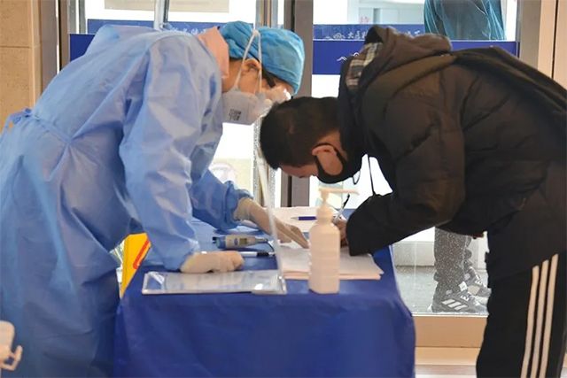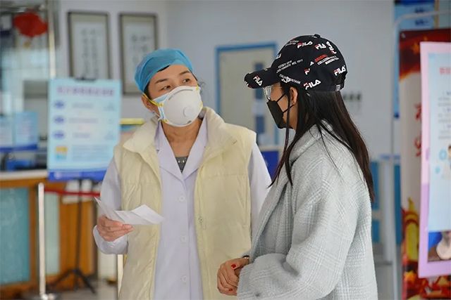 进入医院后,首先就诊的患者和陪同人员通过预检分诊,需要体温测量和流行病学史的采集后,有序进入医院。在预检分诊处,预检分诊人员严格执行预检分诊制度,落实发热病人登记报告制度,加强重点防控人群的筛查和分诊。为前来就诊的患者进行体温监测详细问诊并登记记录,做好初步排查工作,有效保障了就诊患者和医护人员的健康安全。