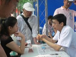 整个活动几乎一开始就进入了高潮:尽管活动是从9:30开幕的,但在北京京城皮肤医院的义诊区,7:30多就被热切的人们围住了。许多人自觉地排队等候。排队等候的结果是:医生们几乎连喝一口水的空闲都没有。