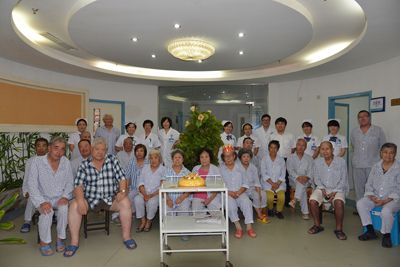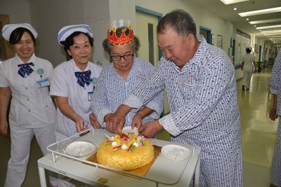 生日活动现场更是让这两位巧遇的同月同日生的患者感受到了莫大的感动,在大家的生日快乐祝福歌后,丁女士和张先生又一起跟参加生日party的病友以及医护人员分享了医院给准备的生日蛋糕,整个现场其乐融融,较后还请医护人员合影留念。