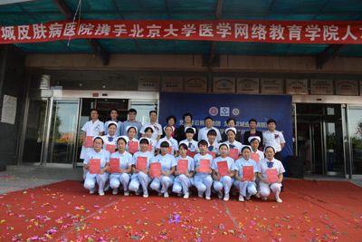 北京大学医学网络教育学院,自创办以来为广大卫生在职人员提供自由接受医学高等教育的机会。今天,北京京城皮肤医院与北京大学医学网络教育学院展开深度合作,进一步促进了人才培养与使用的紧密对接,特别是加快临床紧缺型专业人才培养的速度。充分结合北京大学医学网络教育平台优势,通过院、校联合的培育通道,鼓励并提供给在岗的医疗、护理、医技等专业人员继续学习深造的成长机会,逐渐形成并完善医疗卫生人才的培养工作及平台。同时,推进我院管理、服务、技术更上一层楼, 地为皮肤病患者服务。