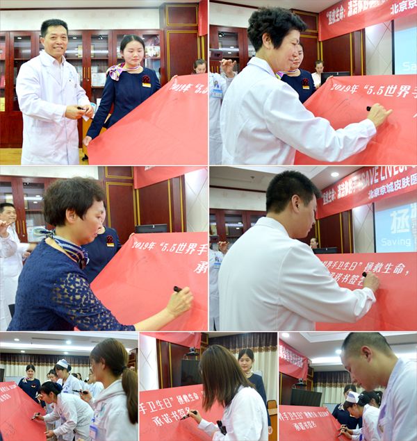 较后张毅院长做总结讲话指出:“ 手卫生日是由 卫生组织(WHO)于2009年倡议发起,强调医疗护理过程中提高医护人员手部卫生、减少医源性感染的重要性。 2009年制定《医务人员手卫生规范》,把一个看似小小的洗手问题上升致 的标准和规范,足见对这个问题的重视。今年是第11个手卫生日,要进一步提高全院职工手卫生意识,有效控制和降低院内感染的发生,营造良好的感控文化氛围,要以评促建,通过培训、流程改造、设施配置、人员考核等将“指尖上的感控”落到实处,真正改善院感管理、逐渐提升院感质量。感染防控,从手做起;呵护健康,从手开始。让我们共同努力,净在手中,安在心中!关爱生命, 在手!”并率先在“手卫生承诺书签名处”签名,随后院领导、医护人员及保洁人员也纷纷参与,郑重的写下了自己对患者、对家人、对自己的健康诺言。