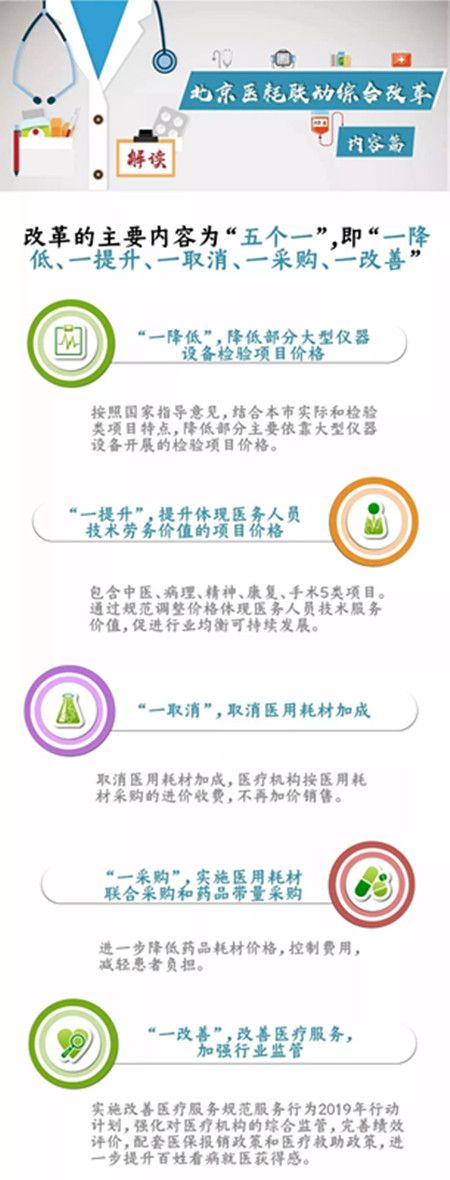 北京市卫生健康委党委书记、主任雷海潮介绍,此次改革是在医药分开综合改革基础上,取消医用耗材加成,开展 药品集中采购试点,实行京津冀医用耗材联合采购,规范调整医疗服务项目价格,积极改善医疗服务, 地促进人民群众健康。
