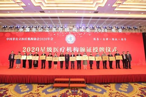 10月23日,中国非公立医疗机构协会2020年年会在上海举行,原中央国家机关工委副书记陈存根、原卫生部副部长、协会顾问殷大奎,中国非公立医疗机构协会常务副会长兼秘书长郝德明、海南博鳌乐城国际旅游先行区管理局副局长刘哲峰等领导出席会议并讲话。协会负责人、常务理事、理事、会员代表,各分支机构、地方协会负责人以及知名医疗企业人士逾600人在上海松江区富悦大酒店齐聚一堂,年会上隆重举行了2020年度星级医疗机构颁证授牌仪式。